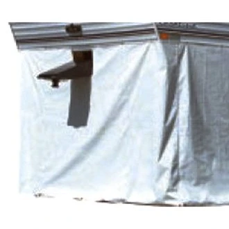 Polar White 5th Wheel Trailer Storage Skirt (Polar White, 64″H x 296″L) (3503) by ADCO®. Turn wasted space into a useful storage area under your 5th wheel overhang. Great for outdoor furniture and bicycles. Zipper doors for easy access to stored goods on all three sides. New removable hook and loop fastener cutout for extra large tongues. Extends from bottom front of the unit to the ground. Nylon zippers for easy access. Made of heavy-duty three-layer, White laminated vinyl. Includes screw-in snap fasteners and tent spikes. For correct fit, measure height and length around front of overhang. Professional installation recommended. If you’re looking for a quality product that will serve you for years to come, look no further.