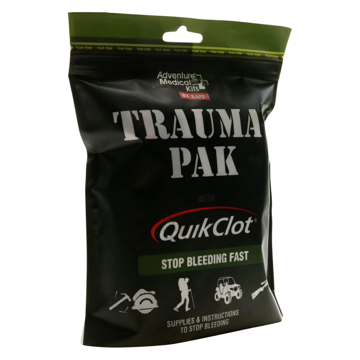 QuikClot™ Trauma Pak by Adventure Medical Kits®. When it comes to emergencies, professionals know excess equipment only gets in the way. Act fast to provide immediate trauma care with this Trauma Pak which contains key supplies to control bleeding at the scene until medical professionals arrive. This essentials-only trauma pack contains Adventure™ Medical Kit’s QuikClot, a hemostatic dressing that stops bleeding three times faster by accelerating your body’s natural clotting process with zeolite. Packed in a tough, waterproof pouch that easily fits into a BDU pocket or glove box, the Trauma Pak is compact, easy-to-use addition to your medical kit, first responder kit, or everyday carry bag that could help you save a life.
