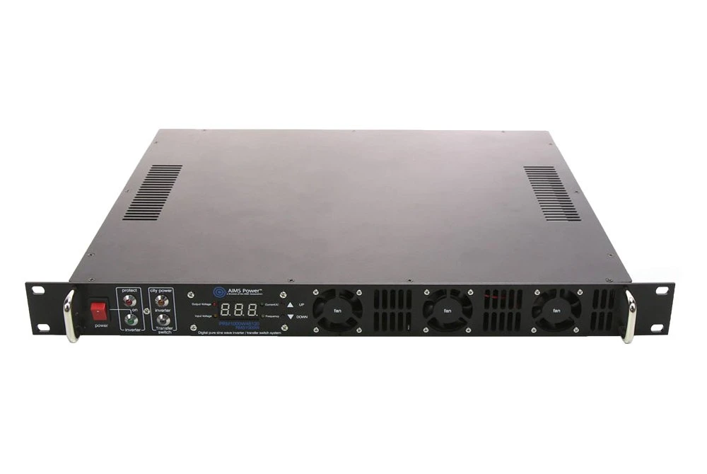 1000 Watt 48V to 120V AC 1U Rack Mount Inverter by AIMS Power®. This rackmount inverter is ideal for providing backup power to your essential equipment. It will generate 1000W of high quality pure sine power at a stable 120Vac output. Power is maintained to your equipment seamlessly through a built in 10 Amp transfer switch with a typical transfer time of less than 20ms.