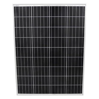 100W Monocrystalline Solar Panel by AIMS Power®. The 100 Watt Monocrystalline Solar Panel from AIMS Power is a versatile performer constructed with high quality tempered glass and a stronger surface to protect from harsh weather conditions. The solar cells used in the panel are high transmission and the textured glass allows for more efficient solar power harvesting. The panel also includes a bypass diode that minimizes the power drop caused by shade. Easy to install using the pre-drilled holes on the aluminum outer frame. Perfect for home, vehicle and RV installations and smaller applications.