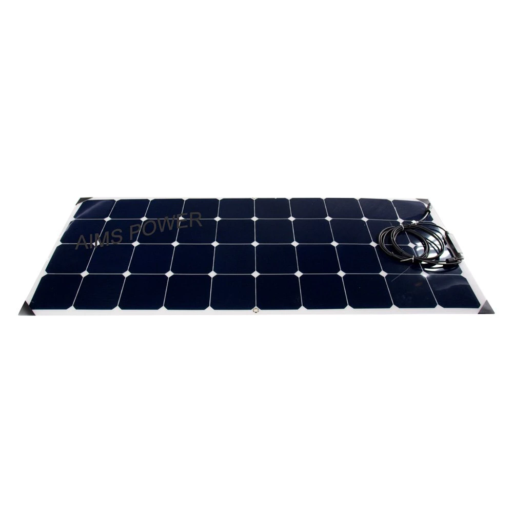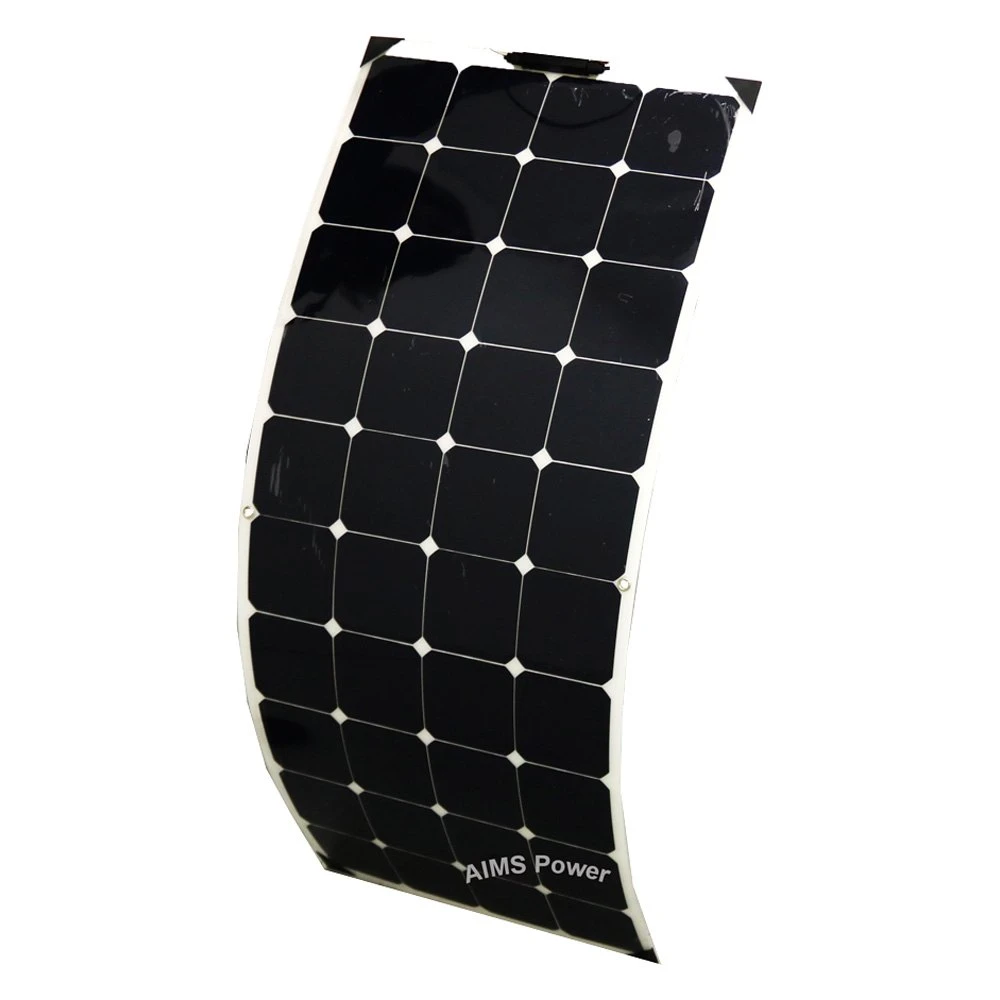130W Flexible Bendable Slim Monocrystalline Solar Panel by AIMS Power®. Introducing the AIMS Power flexible, bendable, thin solar panel. This rugged, easy to install panel works with any application. Built for uneven and curved surfaces. No custom mounting needed. This versatile panel can be used in non-permanent or permanent applications. Easily slides into tight spaces for storage. Primarily used to charge batteries for back up power systems. Whether you want some extra power on your golf cart or a weekend camping trip, these panels will get the job done without the hassle of complicated mounting systems. Make sure to view AIMS Power complete kits.