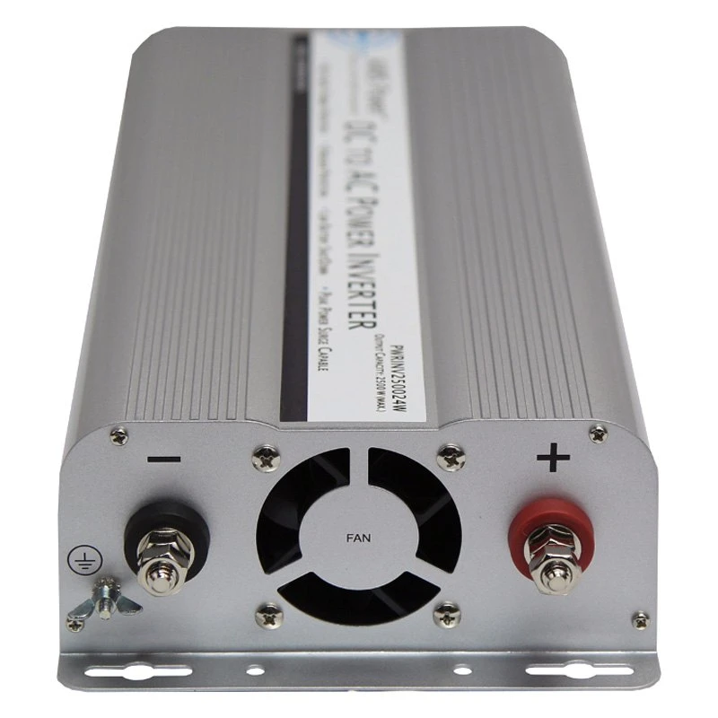 The 2500 watt 12 volt AIMS Power inverter converts DC (direct current) power stored by deep-cycle batteries into AC (alternating current) electricity.