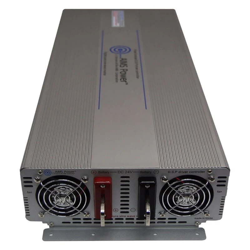 3000W 24V Industrial Pure Sine Wave Inverter by AIMS Power®. AIMS Power is proud to bring you this new 3000 Watt Pure Sine Power Inverter, designed for harsh environments, which has been completely overhauled and now boasts a dual GFCI outlet and is FCC certified. This product also includes a thermally controlled fan, allowing for increased efficiency and less noise. It will continue to put out stable, pure sine power and maintain output voltage, even as you battery bank voltage decreases.