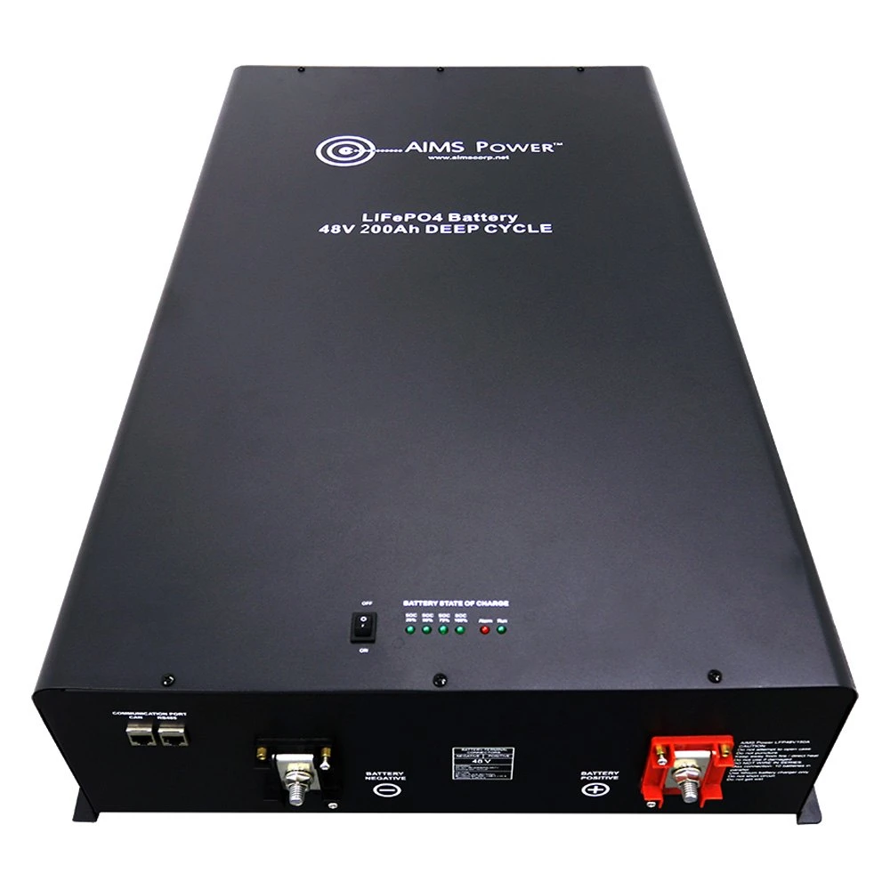 48V 200AMP LIfePO4 Industrial Grade Lithium Battery by AIMS Power®. NEW from AIMS Power! This 48 Volt 200 AMP lithium iron phosphate (LiFePO4) industrial deep cycle battery is packed with power. The battery delivers efficient power for battery systems requiring large amounts of power at 48 Volts. The AIMS Power 48V 200 amp has large amp capacity in one battery and eliminates the need for multiple batteries without losing amperage.