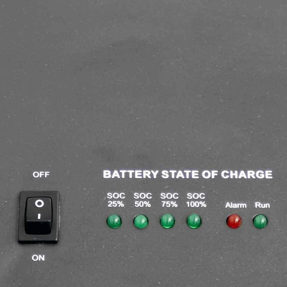- Battery status LED State of Charge display