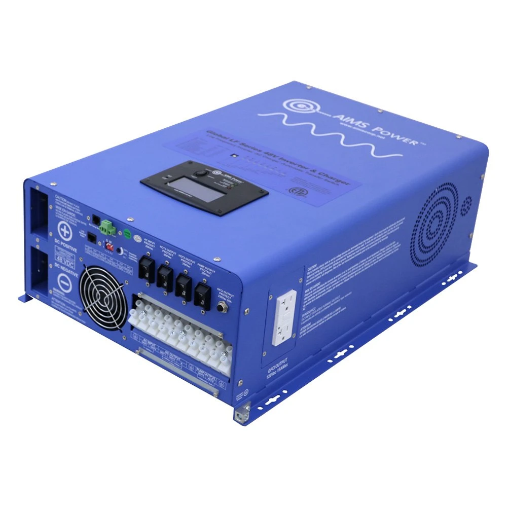 8000W Pure Sine Inverter Charger with ETL Listed to UL 1741 Standard by AIMS Power®. With 48V DC/240V AC Input & 120/240V AC Split Phase Output. AIMS Power line of ETL listed to UL 1741 Standards 48 Volt DC to 120/240 Volt AC inverter chargers is the power house for back up, off grid systems. Built with a 48 Volt DC input, these inverter chargers perform with very little power loss. Users receive a notable increase in efficiency in large systems when compared to using inverters that accept 12 or 24 volts. This can be an attractive feature for sustainability lovers looking to live as efficiently as possible. The most common use for this inverter is emergency backup power for residences and businesses.