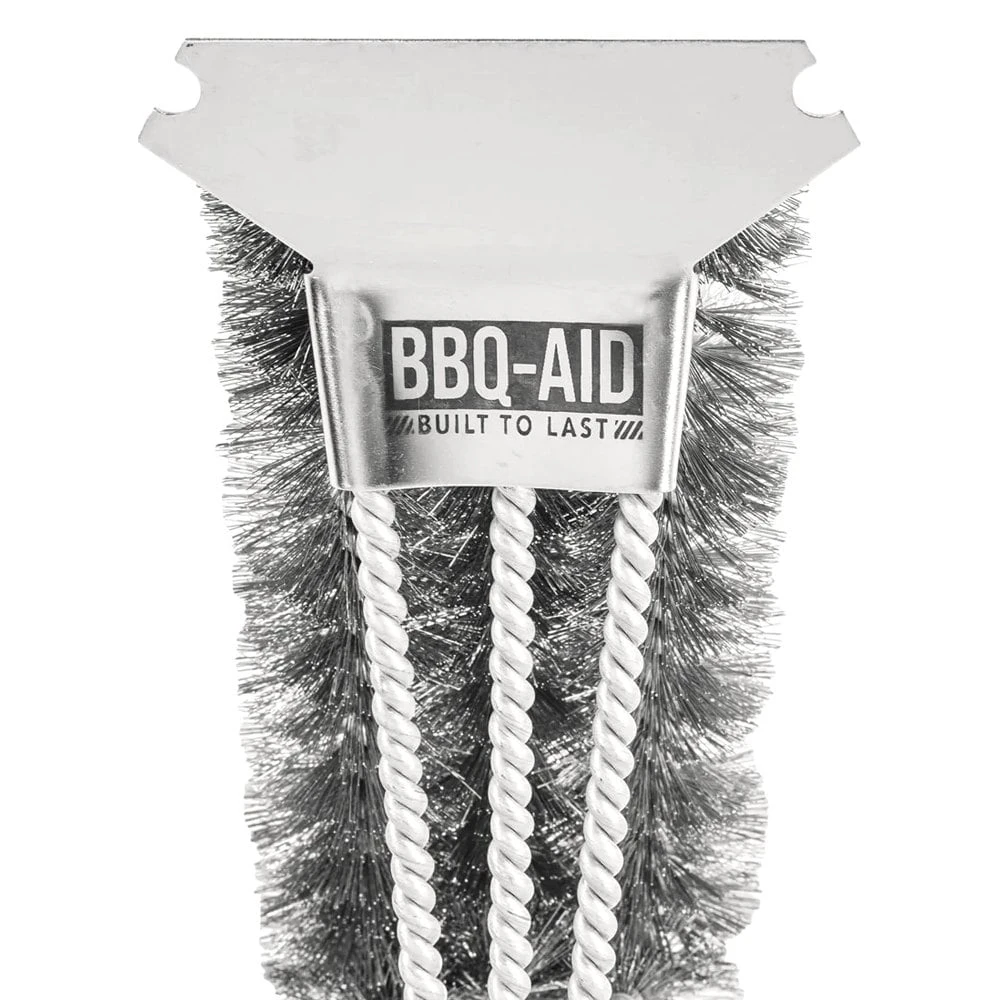 All Angles Grill Brush & Scraper by BBQ-AID®. BBQ Brush Quickly removes burnt on residue and quickly gets your grill clean, among the best rated grill brushes. BBQ-AID grilling brush makes great gift idea.