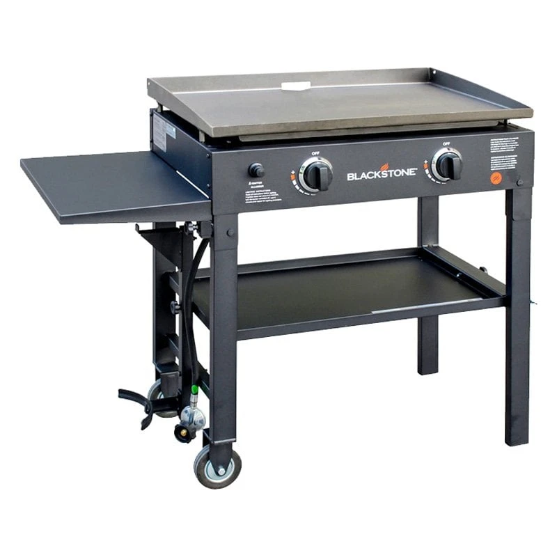 28″ Classic Black Griddle Cooking Station by Blackstone®. Size: 28″. Rear Grease Management. The Blackstone 2 Burner 28” Gas Griddle in Classic Black is perfect for crowds big and small. With a surface big enough to fit 44 hot dogs, you’ll be amazed by this 34,000 BTU powerhouse! Built with industrial materials for durability and optimal heat distribution. Now with the rear grease management system for no-mess cooking and easy cleanup. Cook anything, anytime, anywhere!