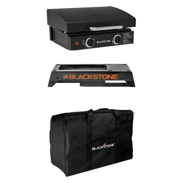 Griddle or Grill Bundle Carry Bag by Blackstone®. Custom designed Griddle Bundle Carry bag to fit the Blackstone 17″ or 22″ Tabletop Griddle, with hood and stand (sold separately). Protect your investment with this heavy duty bag made with 600 D Polyester. Featured with a durable zipper and handle to make transporting an ease to bring your griddle to your favorite locations! Weather Resistant.