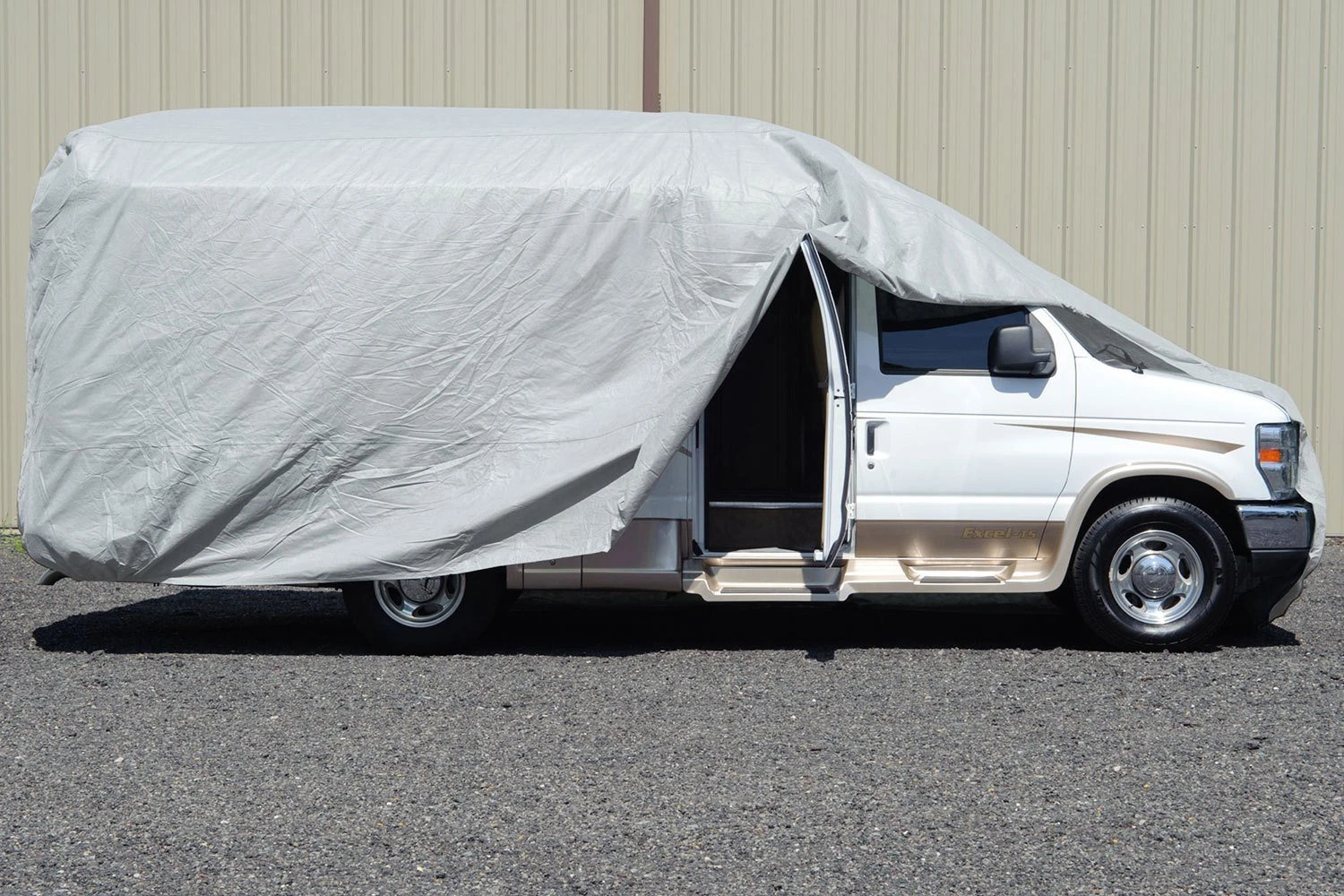 Premier™ Gray Class B Motorhome Cover (Gray, Up to 19’5″) (RVRP-20) by Budge®. Is made out of a long-lasting 300 Denier Polyester material. The Premier is top of line the RV cover and will provide all-weather protection for your vehicle.
