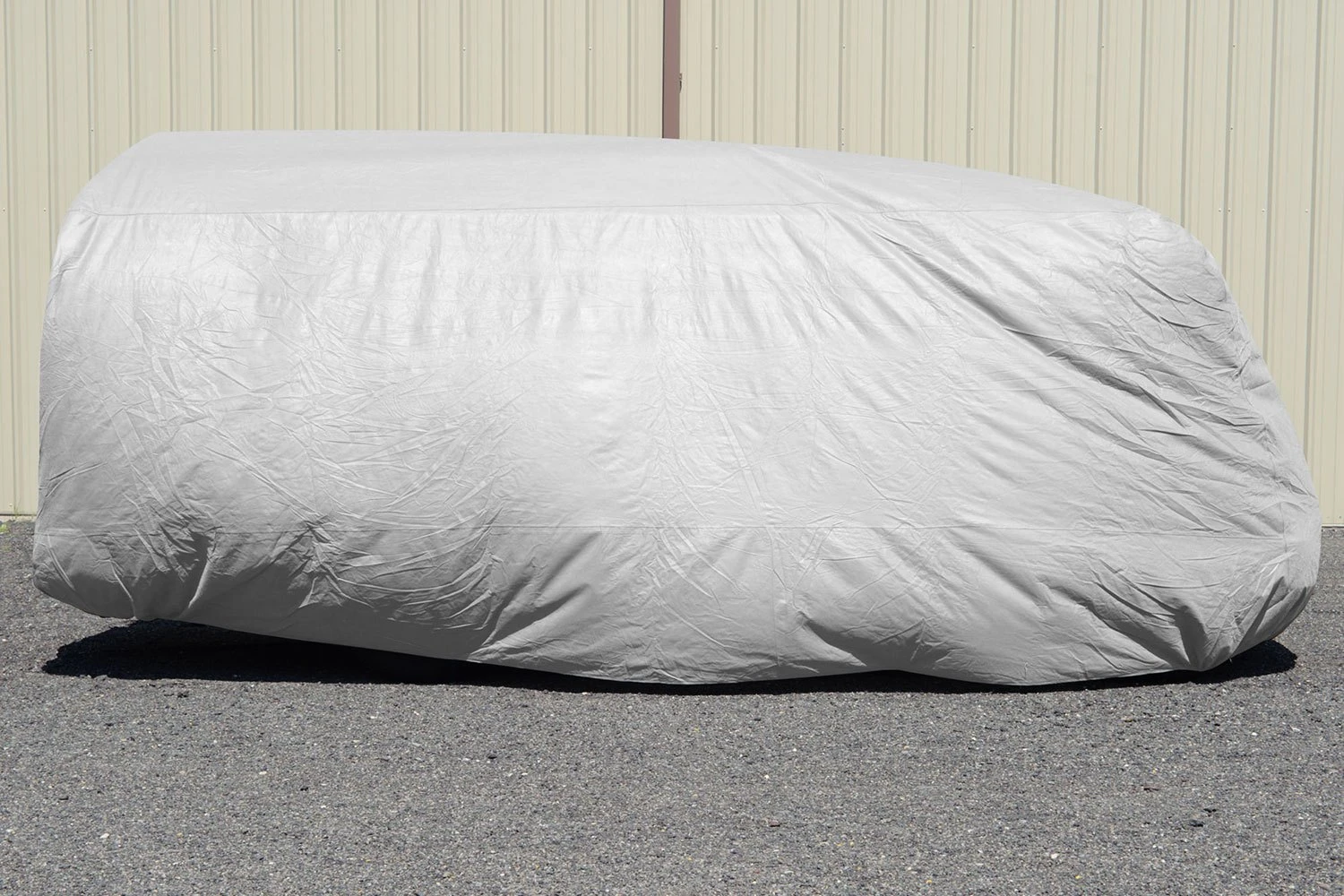 Premier™ Gray Class B Motorhome Cover (Gray, Up to 26′) (RVRP-26) by Budge®. Is made out of a long-lasting 300 Denier Polyester material. The Premier is top of line the RV cover and will provide all-weather protection for your vehicle.