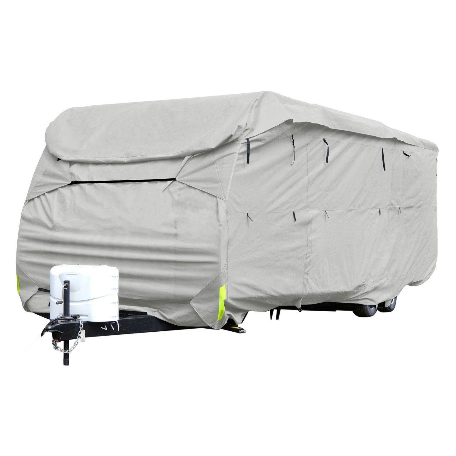 Premier™ Gray Toy Hauler Trailer Cover (Gray, Up to 18′) (RVRP-59) by Budge®. Is made out of a long-lasting 300 Denier Polyester material. The Premier is top of line the RV cover and will provide all-weather protection for your vehicle.