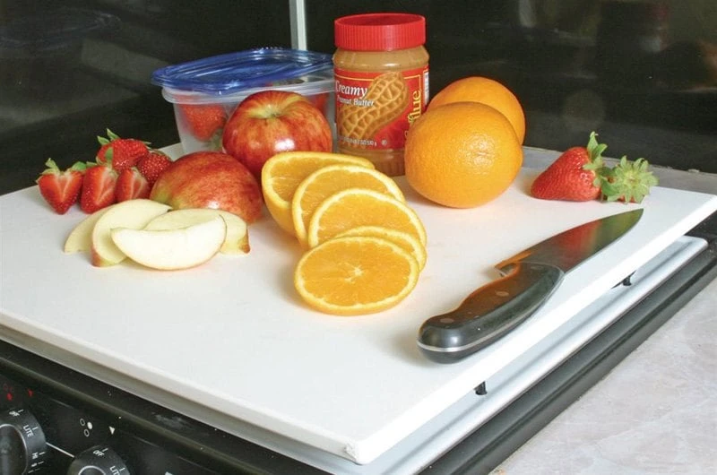 - Quiet stovetop rattle and add much-needed counter space in the RV kitchen