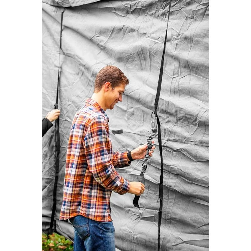 - Heavy-Duty integrated zippers allow easy access to doors and storage with cover in place