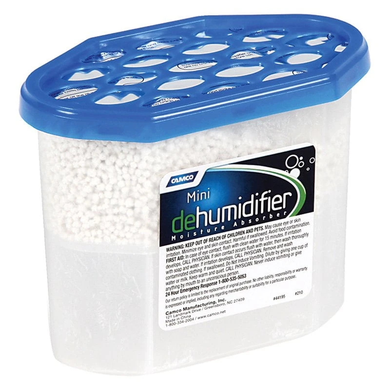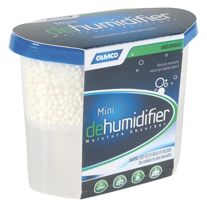 8.1 oz. Mini Dehumidifier with Moisture Absorber by Camco®. It reduces moisture which could lead to odors. It works to remove dampness from the air, helping to reduce mildew, mold and musty odors.