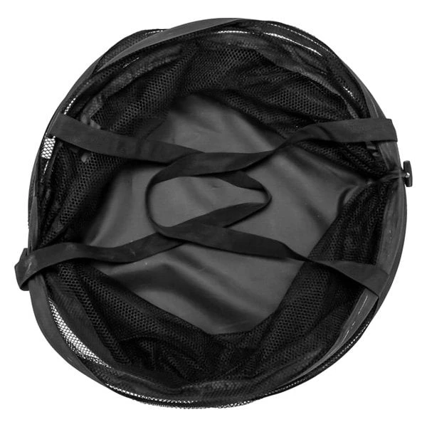 Black Fabric Pop-Up Laundry Bag by Camco®. The Camco Laundry Hamper is a lightweight option that springs open for use and collapses flat for storage, making it a great option for small spaces. Two tie down loops keep the hamper flat when not in use, and mesh sides allow for more airflow than standard laundry hampers. Durable carry handles make transporting laundry easy.