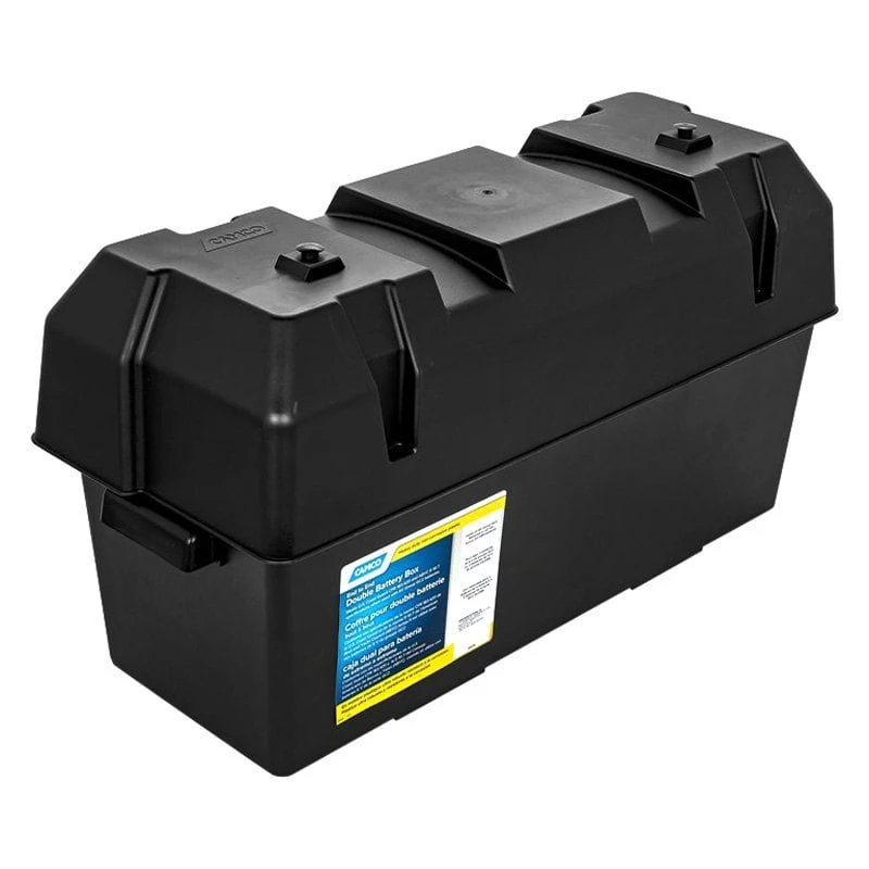 Double Battery Box for Group GC2, 24 Batteries by Camco®. This is a black lightweight, heavy-duty corrosion-resistant polypropylene box which is designed to secure and protect your battery.