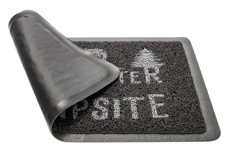 - The mat is designed with looped rubber material that helps trap moisture, mud and other messy unwanted debris from tracking into your home, RV, or campsite