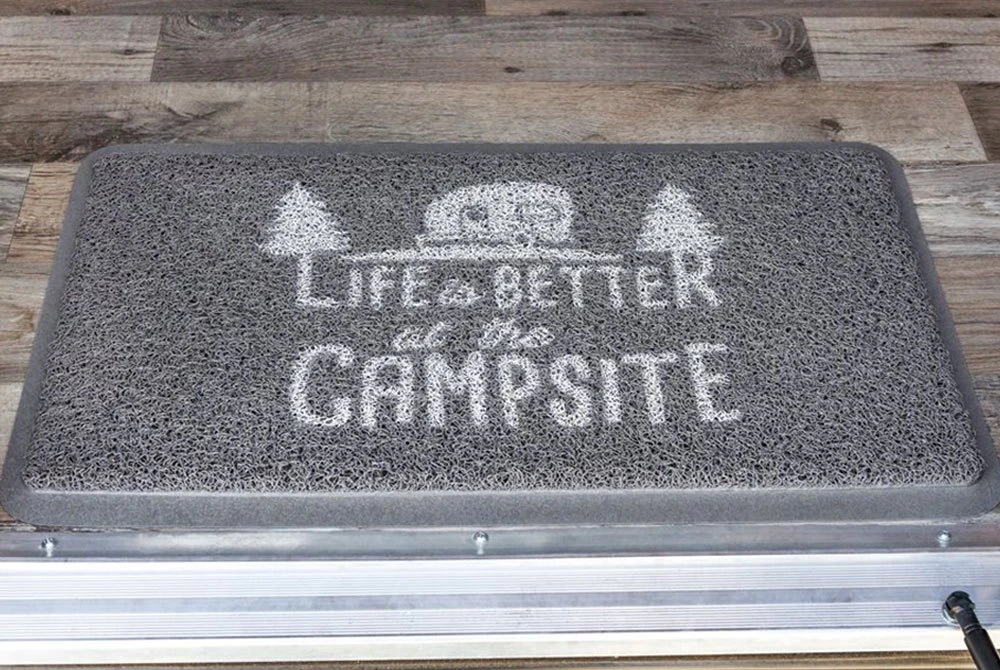 - Gray mat with a white “Life Is Better at The Campsite” logo