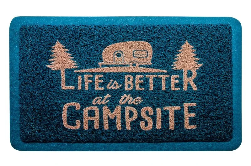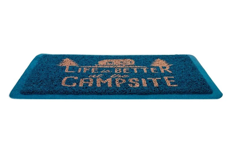 - Blue mat with an orange “Life Is Better at The Campsite” logo