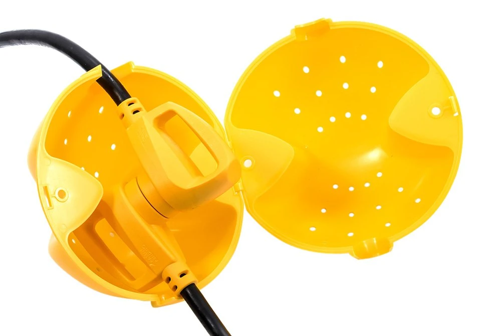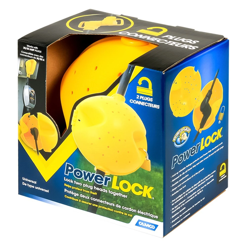 Power Ball Lock by Camco®. The Camco Power Lock is an innovative solution to secure cables and adapters. The spherical design protects your valuable cables by encasing two connected plug-ends deterring theft and tampering. The Power Lock also helps keep plug-ends off the ground, and features holes to drain water in case of rain or condensation. A lock with keys is included. The durable high density polyethylene is UV-stabilized for many years of use. Compatible with many types of cables and adapters.