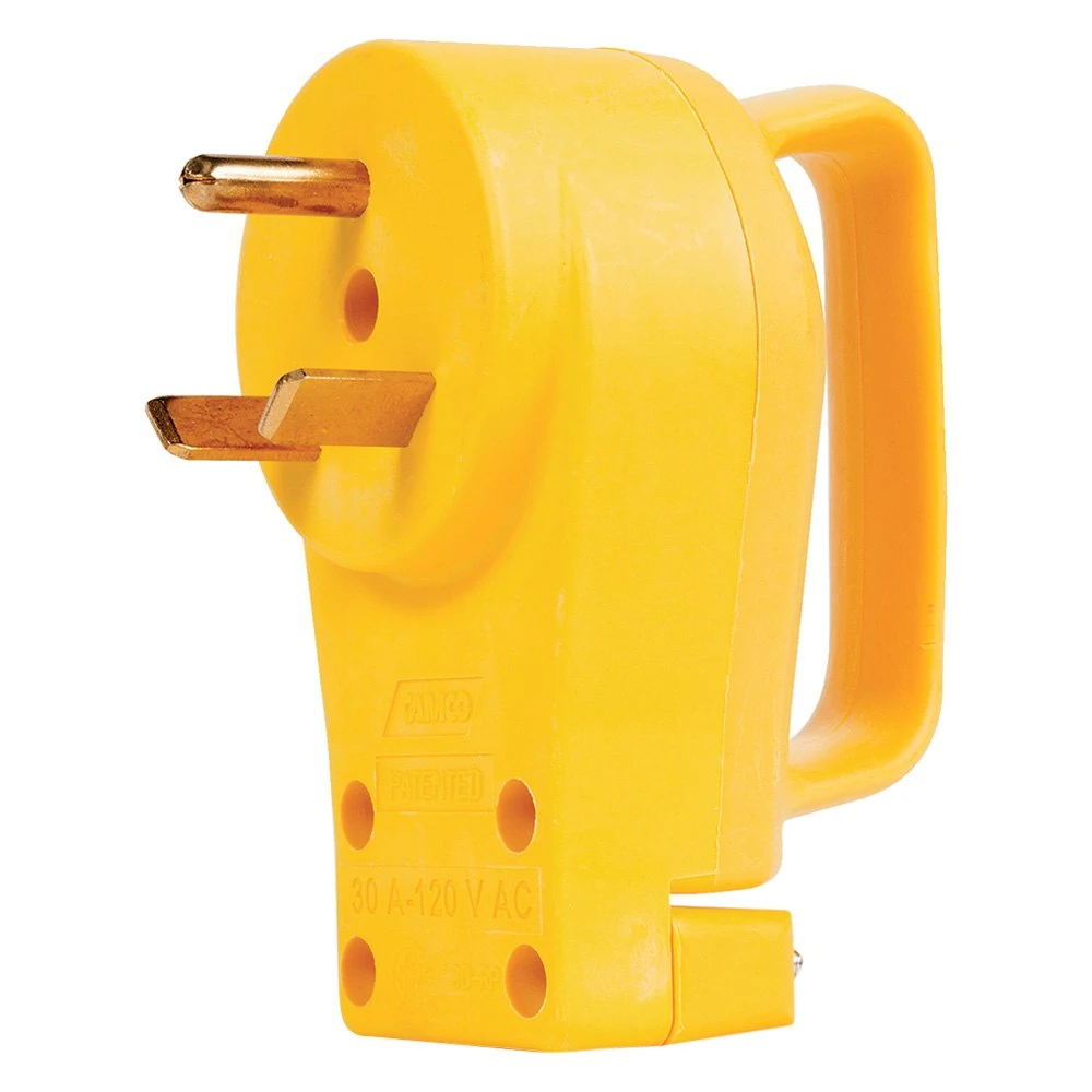 Power Grip™ 30A Male Replacement Plug with Handle Grip by Camco®. Camco RV 30 Amp PowerGrip Replacement Plug replaces your existing power cord plug utilizing patented PowerGrip handles for ease of use.