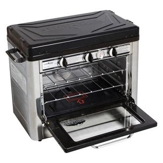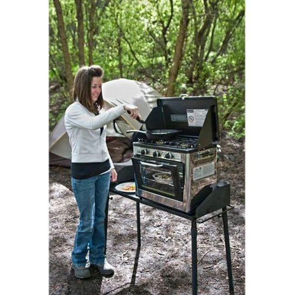 Deluxe Outdoor Oven by Camp Chef®. S’mores over a campfire aren’t your only option when it comes to tasty treats at the campsite. When you bring along Deluxe Outdoor Oven, the cooking possibilities are endless. This oven unlocks capabilities of a home oven and range. Designed to be both portable and versatile, the Deluxe Outdoor Oven provides you with enough heat to cook anything from a breakfast skillet to your fresh cinnamon rolls. It’s perfect for camping, emergency preparedness, tailgating, and more. The oven can reach temperatures up to 400º F and will easily fit a 9 x 13 pan. With a 1 lb. propane bottle, you can hold a temperature of 350º F for up to 7 hours. Add a camping oven to your collection today.