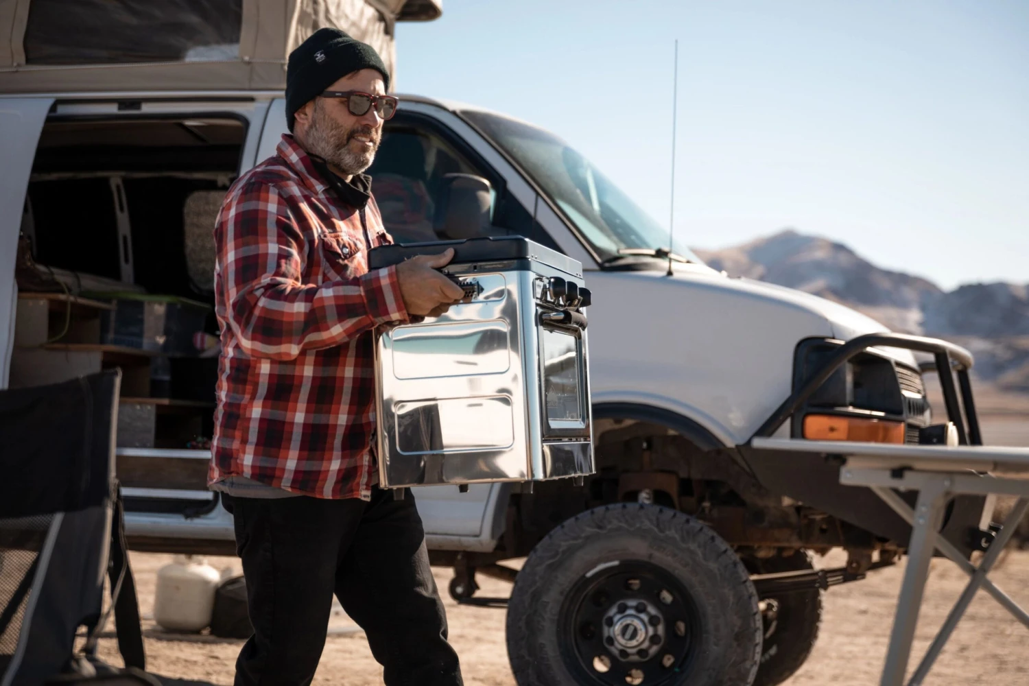 - Folding lid provides a three-sided windscreen