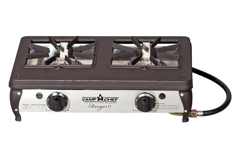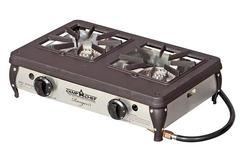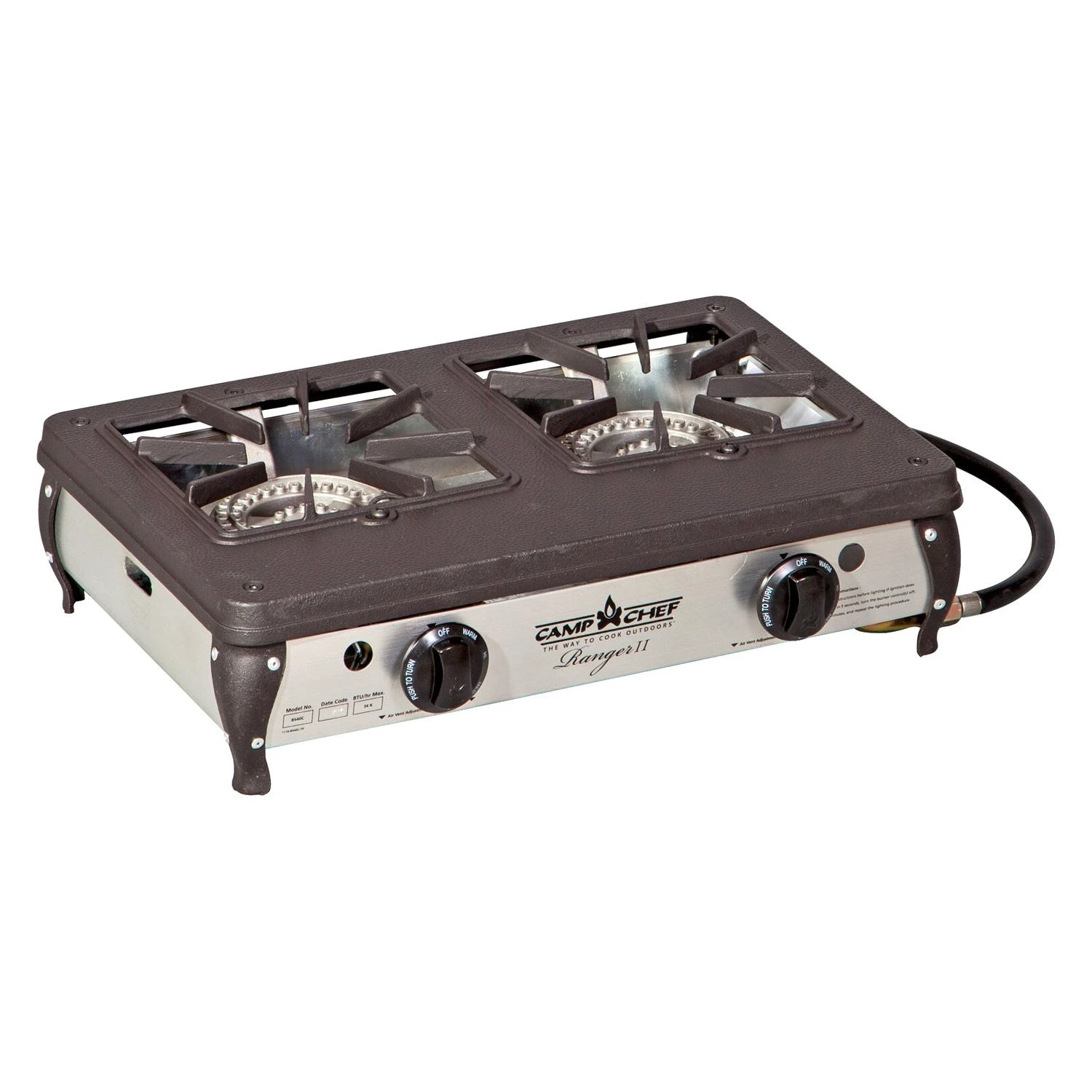 Ranger 2 Burner Cooking System by Camp Chef®. 1 Piece. Good, warm food seems to taste better in the outdoors, don’t you think? And whether you’re cooking in the duck blind or at the tailgate party you should never have to sacrifice power for portability. The Ranger II is a big unit in a compact body: each burner pumps out all the heat you will need with two 17,000 BTU burners while weighing only 17 pounds. This is the best way to get huge power without extra packing for hunting, camping, tailgating, fishing, and more.