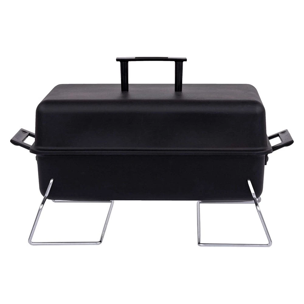190 Portable Charcoal Grill (465131014) by Char-Broil®. Powered by charcoal briquettes or lump charcoal. Look no further than the Portable Tabletop charcoal grill. Features include chrome-plated steel wire cooking grates. The grill folds up compactly and sets up easily so you can take your grill with you when you’re tailgating, camping or on the beach.