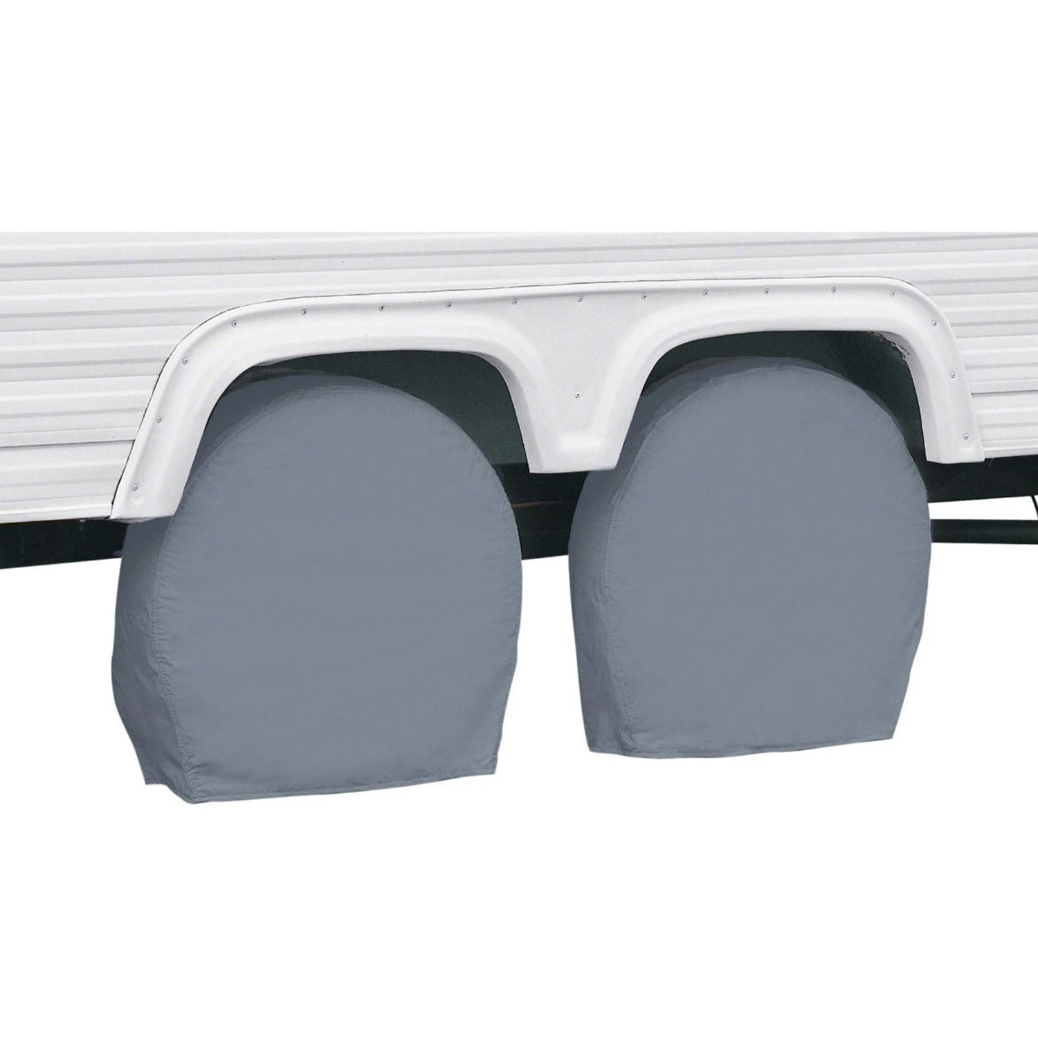 Over Drive™ Gray Single Axle RV Wheel Covers (Gray, 24″-27″Dia) (80-083-151001-00) by Classic Accessories®. The Over Drive RV Wheel Covers by Classic Accessories provides sturdy tire protection, guarding tires and wheels against sun damage, dirt and rust when your RV is parked. When you buy a Classic Accessories RV cover you are not just getting a cover – you’re also purchasing peace of mind.
