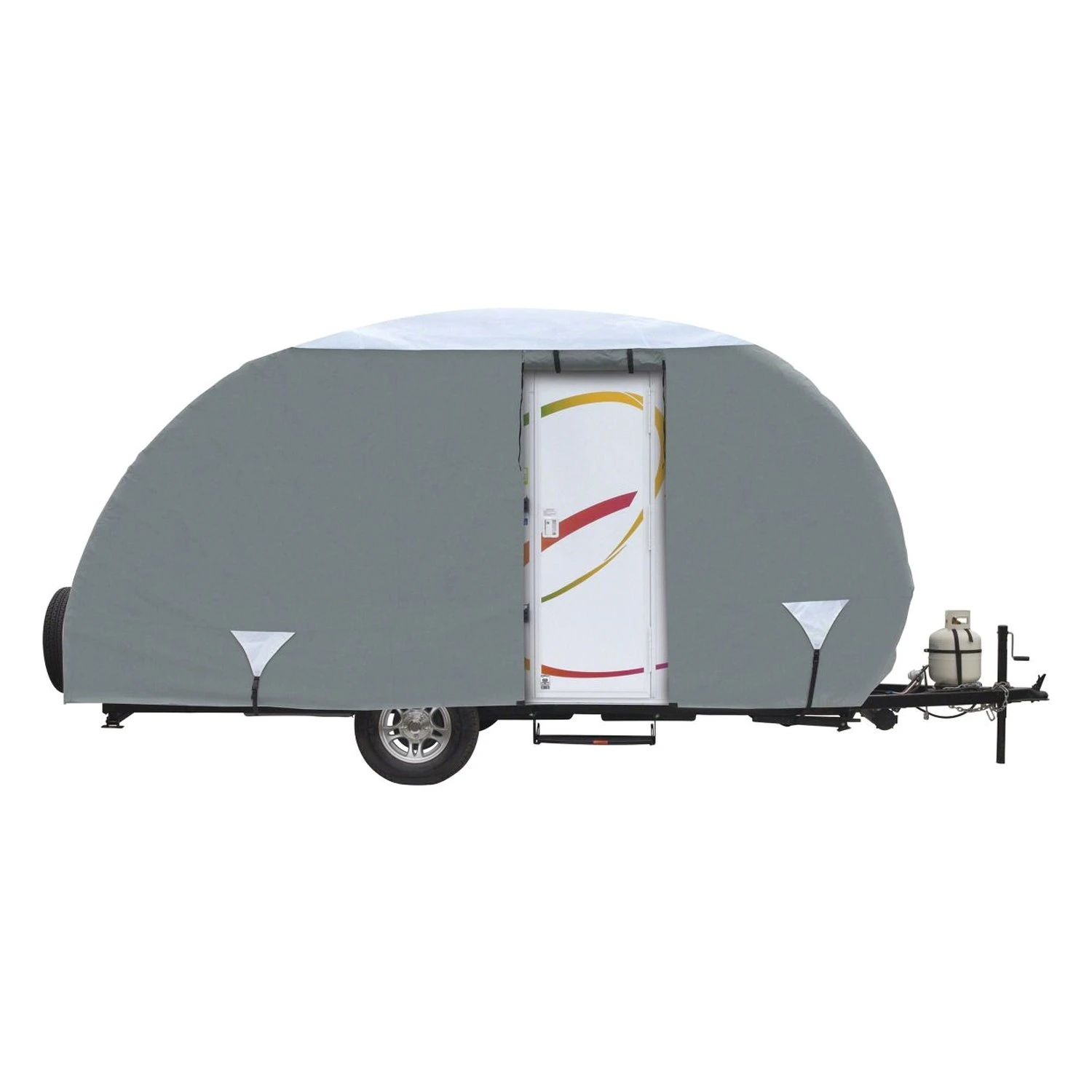 Over Drive PolyPRO3™ Deluxe Gray with White Roof R-Pod Travel Trailer Cover (Gray with White Roof, Up to 13’7″) (80-198-141001-00) by Classic Accessories®. Durable PolyPRO3 RV covers provide streamlined, strong protection that stands out from the pack. Max Weather Protection with 3-Ply Poly Fabric Roof RV Cover. Durable PolyPro 3 RV covers provide all season weather protection. Heavy duty, triple ply PolyPro 3 fabric tops and quick drying PolyPro 1 sides protect while reducing bulk. Keep your trailer in mint condition with this high quality trailer cover made for you to enjoy all the comforts of home away from home. Whether you are looking for a cover for mild, moderate or severe weather conditions.