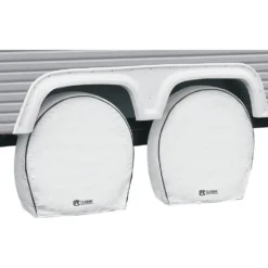 Over Drive™ Deluxe White Single Axle RV Wheel Covers (White, 33″-36″Dia) (80-224-182302-00) by Classic Accessories®. The Over Drive Deluxe RV Tire Guards by Classic Accessories provides heavy-duty protection for tires and wheels against sun damage. When you buy a Classic Accessories RV cover you are not just getting a cover; you’re also purchasing peace of mind.
