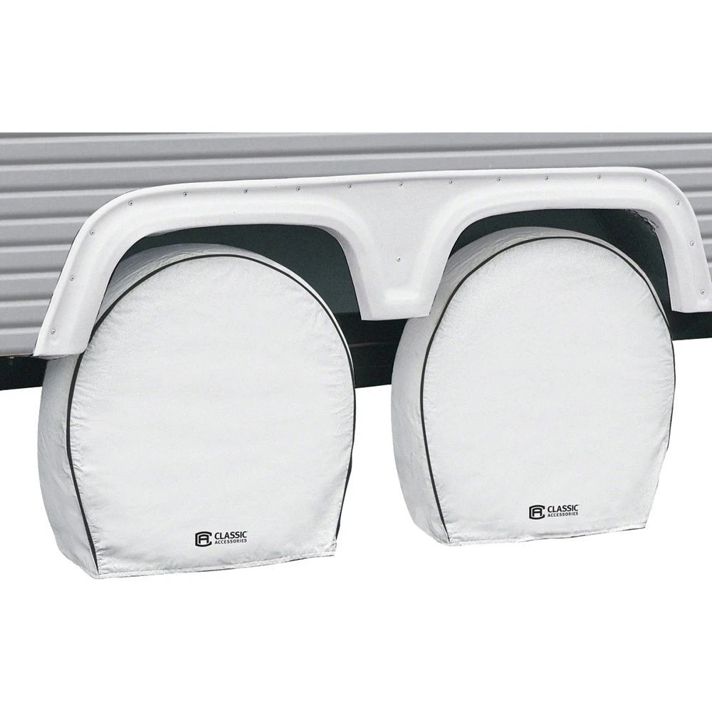 Over Drive™ Deluxe White Single Axle RV Wheel Covers (White, 37″-41″Dia) (80-225-192302-00) by Classic Accessories®. The Over Drive Deluxe RV Tire Guards by Classic Accessories provides heavy-duty protection for tires and wheels against sun damage. When you buy a Classic Accessories RV cover you are not just getting a cover; you’re also purchasing peace of mind.