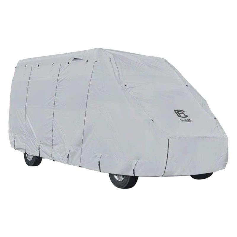 PermaPro™ Gray Class B Motorhome Cover (Gray, Up to 20′) (80-411-141001-RT) by Classic Accessories®. This top-grade product is expertly made in compliance with stringent industry standards to offer a fusion of a well-balanced design and high level of craftsmanship. Manufactured from industry-leading materials using up-to-date equipment, it ensures everlasting reliability and enduring value. This product is distinguished by total quality assurance, unsurpassed by anybody else.
