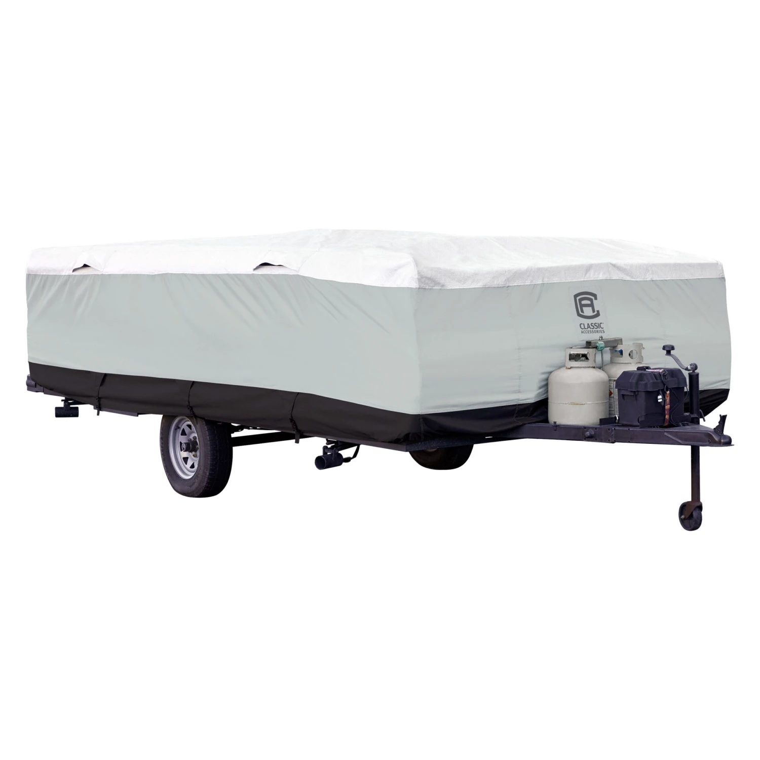SkyShield™ Gray with White Roof Hi-Lo Trailer Cover (Gray with White Roof, Up to 10′) (80-467-143101-EX) by Classic Accessories®. Water-repellent SkyShield Deluxe Tyvek RV covers by Classic Accessories provide a bonded tear-resistant DuPont Tyvek top with PermaPro ripstop sides for all-season protection. Zippered side and rear panels for easy access to storage compartments. When you buy a Classic Accessories RV cover you are not just getting a cover; you’re also purchasing peace of mind. Not only will you be protected from the elements, but you’ll be protected with the easiest warranty in the industry.