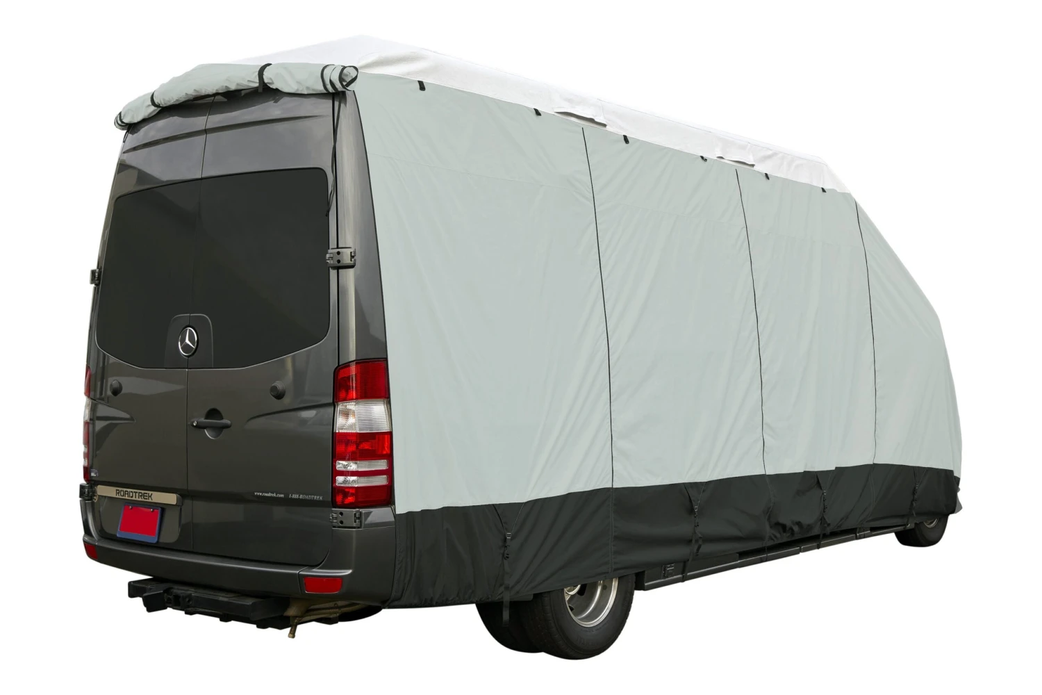 SkyShield™ Gray with White Roof Class B Motorhome Cover (Gray with White Roof, Up to 20′) (80-470-143101-EX) by Classic Accessories®. Water-repellent SkyShield Deluxe Tyvek RV covers by Classic Accessories provides a bonded tear-resistant DuPont Tyvek top with PermaPro ripstop sides for all-season protection. Zippered side and rear panels for easy access to storage compartments. When you buy a Classic Accessories RV cover you are not just getting a cover; you’re also purchasing peace of mind. Not only will you be protected from the elements, but you’ll be protected with the easiest warranty in the industry.