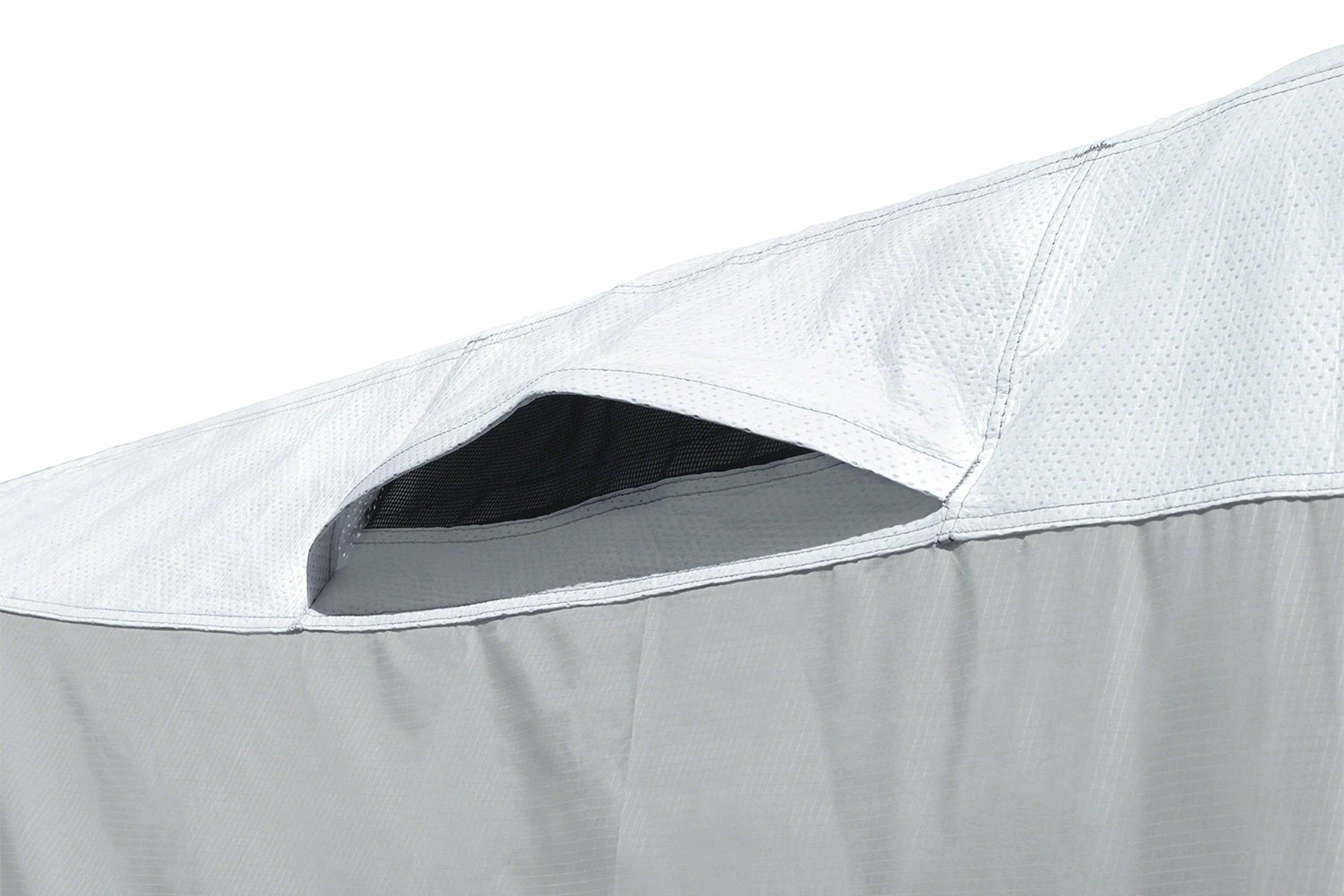 - Bonded DuPont Tyvek fabric top provides long-lasting protection from UV-rays and water; air vents reduce wind lofting and inside moisture