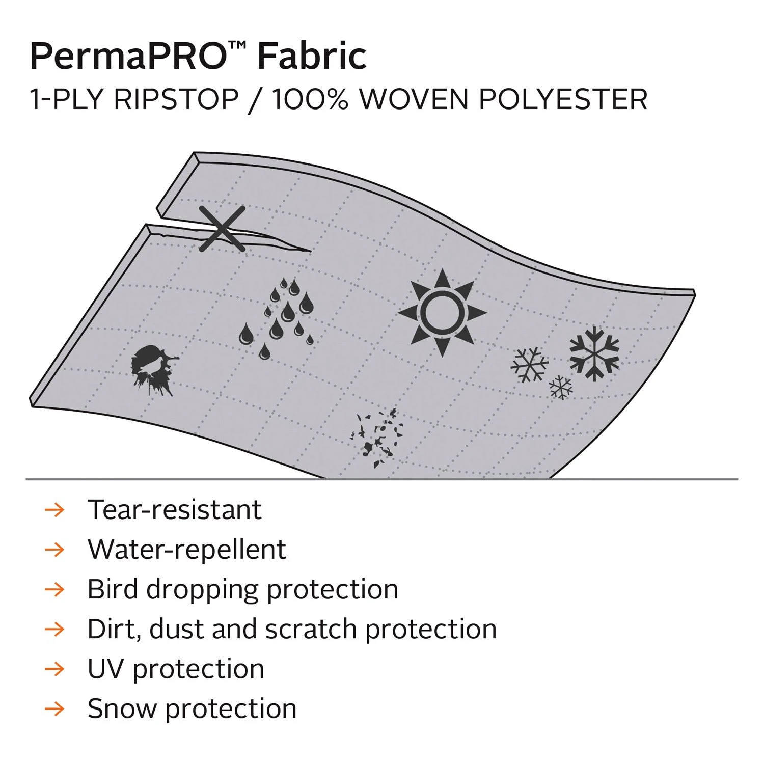 - Extra strength, lightweight PermaPRO ripstop fabric repels water and protects against dirt and sun damage