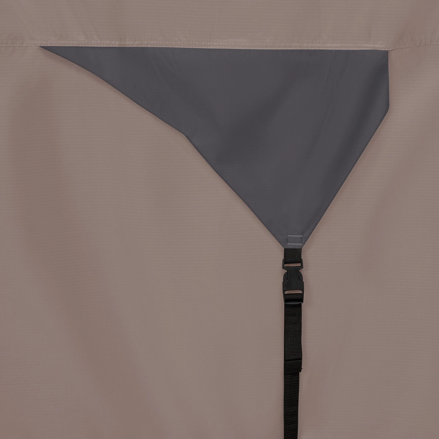 Encompass™ Cinder Travel Trailer Cover (Cinder, Up to 24′) (80-487-162401-RT) by Classic Accessories®. Keep your RV ready for any expedition with Encompass RV Covers, by Classic Accessories. Spend less time cleaning and more time enjoying your RV when you’re ready to explore the outdoors. Encompass covers use sturdy ripstop fabric to protect your RV from harsh UV rays and inclement weather conditions, helping prevent black streaks on your siding and leaves from gathering directly on your roof. Practical features come together to make a strong cover that looks great near your home. The lightweight fabric is easy to lift and carry, the undercarriage Toss Bag System means you don’t have to scramble under the RV to secure the cover, and the dusky Cinder color is a natural, neutral tone that doesn’t show dirt as easily as a lighter color.