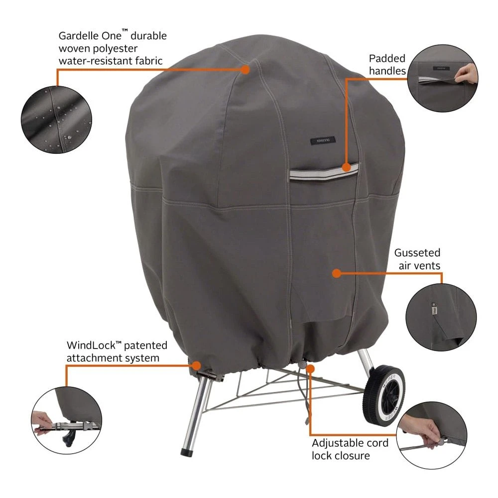 Kettle BBQ Grill Cover for Kettle BBQ Grills (30″Dia x 43″H) by Classic Accessories®. This product is made of high-quality materials to serve you for years to come. Designed using state-of-the-art technology and with customers in mind. It will meet your needs and deliver great quality at an affordable cost.