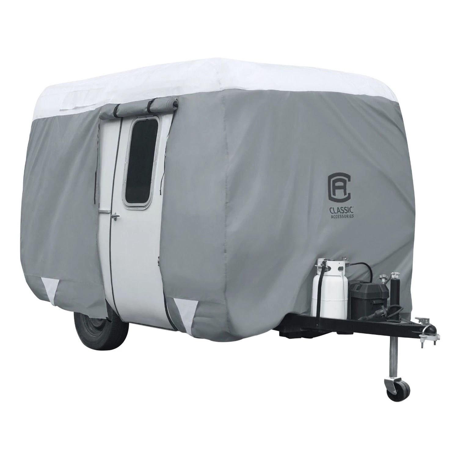 Over Drive PolyPRO3™ Deluxe Gray with White Roof Travel Trailer Cover by Classic Accessories®. Durable PolyPRO3 RV covers provide streamlined, strong protection that stands out from the pack. Max Weather Protection with 3-Ply Poly Fabric Roof RV Cover. Durable PolyPro 3 RV covers provide all season weather protection. Heavy duty, triple ply PolyPro 3 fabric tops and quick drying PolyPro 1 sides protect while reducing bulk. Keep your trailer in mint condition with this high quality trailer cover made for you to enjoy all the comforts of home away from home. Whether you are looking for a cover for mild, moderate or severe weather conditions.