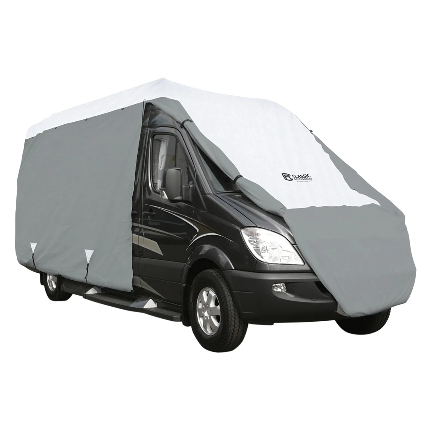 PolyPro™3 Gray with White Roof Class B Motorhome Cover by Classic Accessories®. Durable PolyPro 3 RV covers all season weather protection. Heavy duty, triple ply PolyPro 3 fabric tops and quick drying PolyPro1 sides protect while reducing bulk. Keep your RV out of the burning sun, heavy rain, and snow with this top-notch cover. Made of superior material, this cover ensures rugged protection from dirt, debris, as well as nicks and scratches.