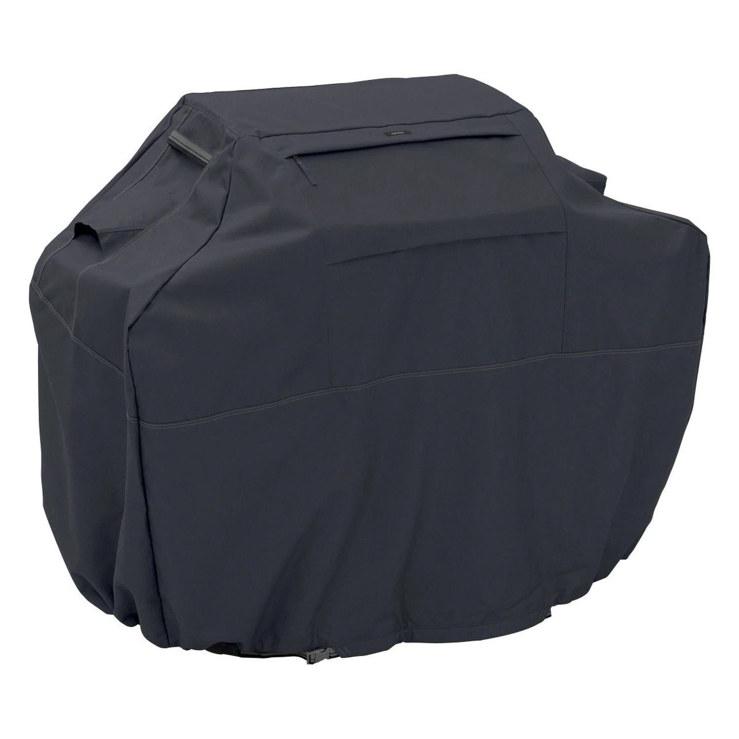 Ravenna™ Black Medium BBQ Grill Cover (64″L x 26″W x 48″H) by Classic Accessories®. Combines convenient features with durable construction and handsome looks.