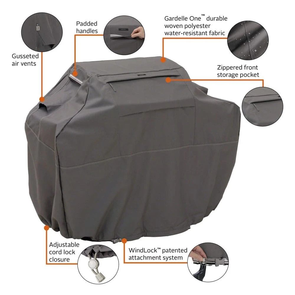Ravenna™ Dark Taupe 3X-Large BBQ Grill Cover (80″L x 26″W x 51″H) by Classic Accessories®. Combines convenient features with durable construction and handsome looks.