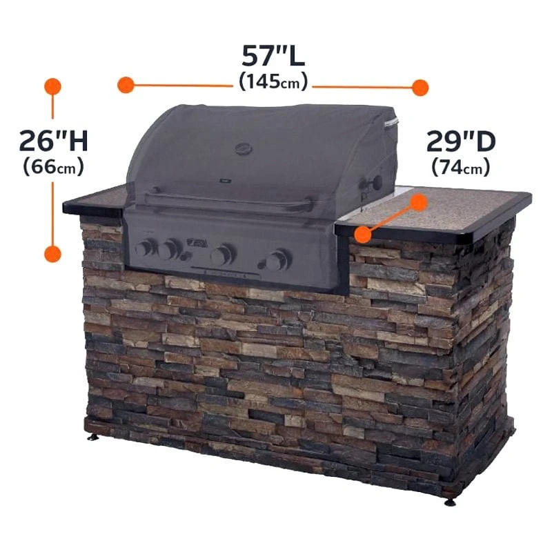 Ravenna™ Dark Taupe Large Built-In Grill Cover (57″L x 29″W x 26″H) by Classic Accessories®. Combines convenient features with durable construction and handsome looks. Time spent with family and friends will be safe for years to come with covers from the Ravenna Collection by Classic Accessories.