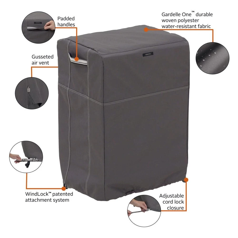 Ravenna™ Dark Taupe Large Square Smoker Cover (26″L x 19.5″W x 40″H) by Classic Accessories®. This top-grade product is expertly made in compliance with stringent industry standards to offer a fusion of a well-balanced design and high level of craftsmanship. Manufactured from industry-leading materials using up-to-date equipment, it ensures everlasting reliability and enduring value. This product is distinguished by total quality assurance, unsurpassed by anybody else
