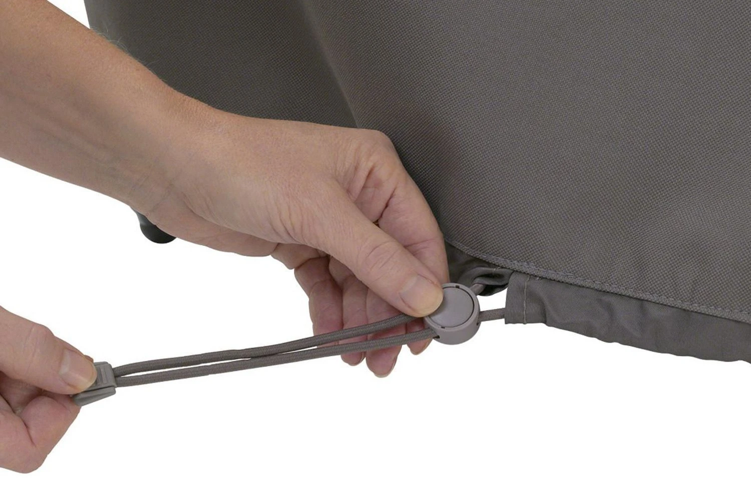 - Elastic hem cord with toggle within specially designed hem tunnels allow easy adjustment resulting in acustom-like fit