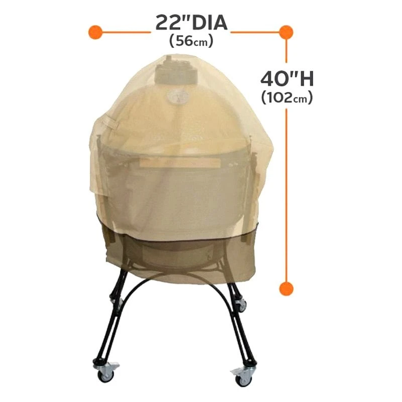 Veranda™ Pebble Large Kamado Grill Cover for Big Green Egg™ Grill (22″Dia x 40″H) by Classic Accessories®. A customer favorite for its fashionable design, durability and extensive collection of covers, the Veranda line features our heavyweight Gardelle™ woven polyester fabric and special water-repellent and resistant undercoating.