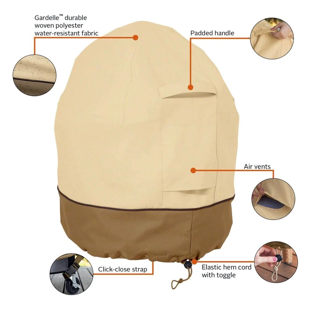 Veranda™ Pebble Mini Kamado Grill Cover (20.5″L x 21.5″W x 27″H) by Classic Accessories®. This top-grade product is expertly made in compliance with stringent industry standards to offer a fusion of a well-balanced design and high level of craftsmanship. Manufactured from industry-leading materials using up-to-date equipment, it ensures everlasting reliability and enduring value. This product is distinguished by total quality assurance, unsurpassed by anybody else